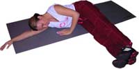 1.Исходное положение на правом боку, причем ноги по отношению к туловищу расположены под прямым углом. Левая нога лежит на правой ноге, стопы вместе. Голова лежит на правой руке, а левая рука - перед собой.