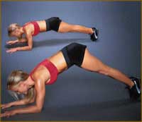 В этом движении трудно распознать упражнение для пресса. Тем не менее, оно исключительно эффективно для всего комплекса мышц живота. Сгибание туловища всегда происходит за счет сокращения мышц пресса. Другое дело, что эти сгибания мы привыкли делать лицом кверху. А если принять положение лицом книзу? Мы получим необычный вариант сгибаний туловища, "включающий" не только главную прямую мышцу, но и пролегающие по бокам внешние косые мышцы. Больше того, попутно будут работать и мышцы низа спины. В итоге мы получаем движение, которое копирует естественную биомеханику: в жизни мышцы пресса никогда не работают изолированно. Они трудятся "на пару" с мышцами поясницы, образуя т.н. мышечный корсет талии. В исходном положении вам надо опереться на локти и носки кроссовок. Спину нужно слегка скруглить. Из такой позиции постарайтесь повыше поднять ягодицы. Основная ошибка такая: приподнимая таз, вы непроизвольно "съезжаете" всем телом вперед. Нагрузка на пресс при этом падает. Помните, верх рук должен оставаться строго перпендикулярным полу на протяжении всего упражнения!