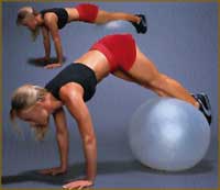 Сложность упражнения резко возрастает, когда ноги вы помещаете на нестабильную опору - мяч. В этом случае упор на локтях уже невозможен. Придется опереться на прямые руки, а это уже само по себе сложно. Мяч должен покоиться под вашими голенями, ближе к коленям. При подъеме ягодиц мяч сам перекатывается к лодыжкам, упираясь в подъем стоп. Опять же не допускайте "съезжания" тела вперед. Руки должны оставаться перпендикулярными полу. Самая сложная часть упражнения, как ни парадоксально, - это возвращение в исходное положение. Тут главное - не потерять равновесия. Ради этого телу придется напрячь все мыщцы-стабилизаторы. Данная особенность упражнения как раз и делает его особенно ценным.